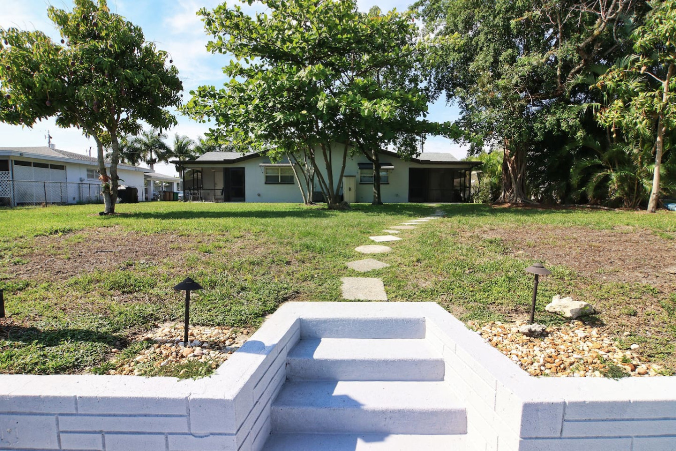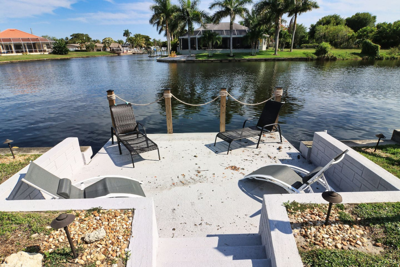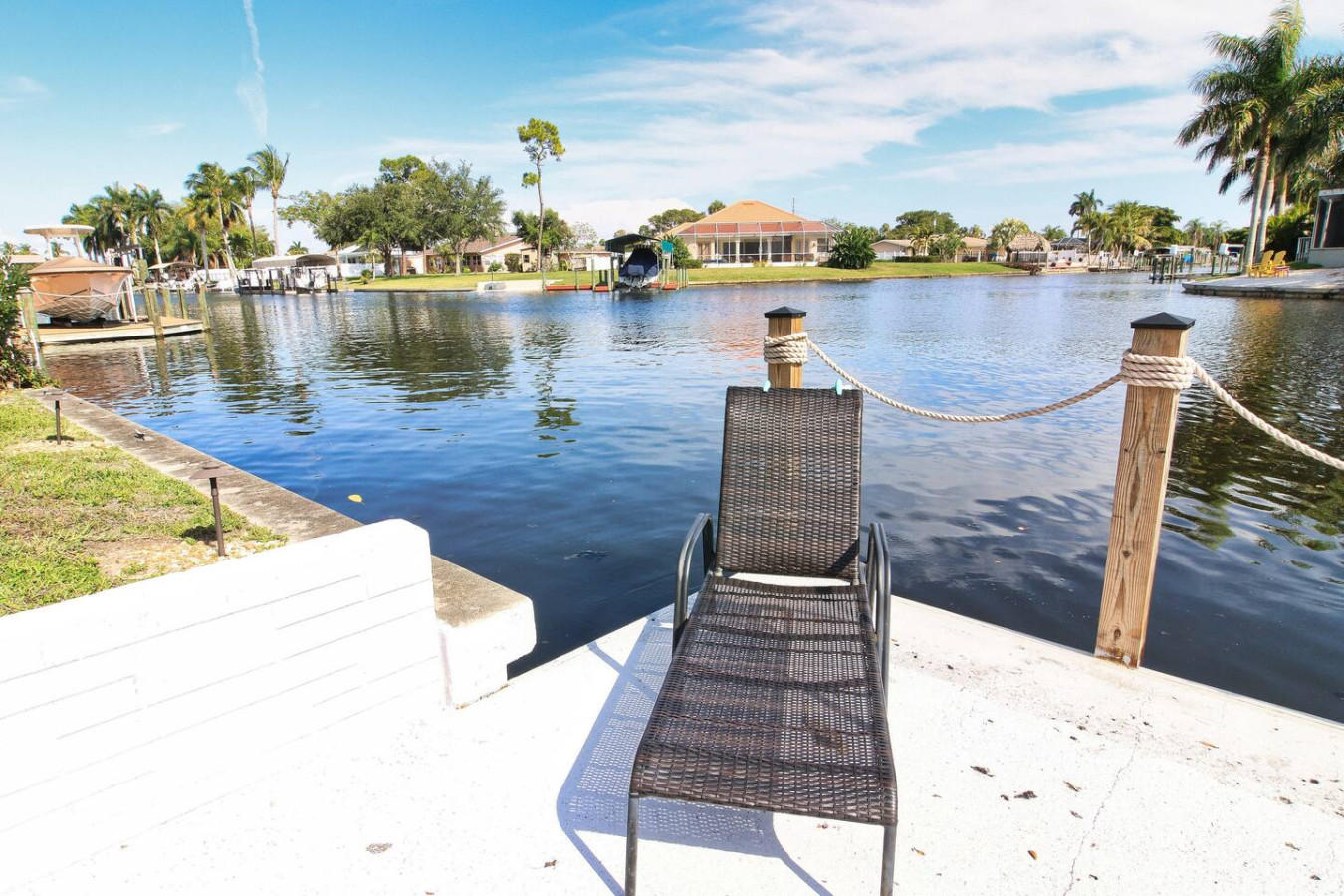 / nightThis Beautiful newly renovated apartment is located just blocks from downtown Cape Coral.Less than 10 minutes walk to bars, restaurants and stores.Use the bikes we provide for guests to bike around.Cape Coral beach/yacht club is 5 mins drive.Rent a boat on your vacation and tie up at the dock on the property.10 minutes boat ride to the river.The space is suited for 2 adults and 2 children.Not for 3-4 adults. Fastest Wi-Fi available Walking distance to bars and restaurants and stores. Bikes on the property for guests.